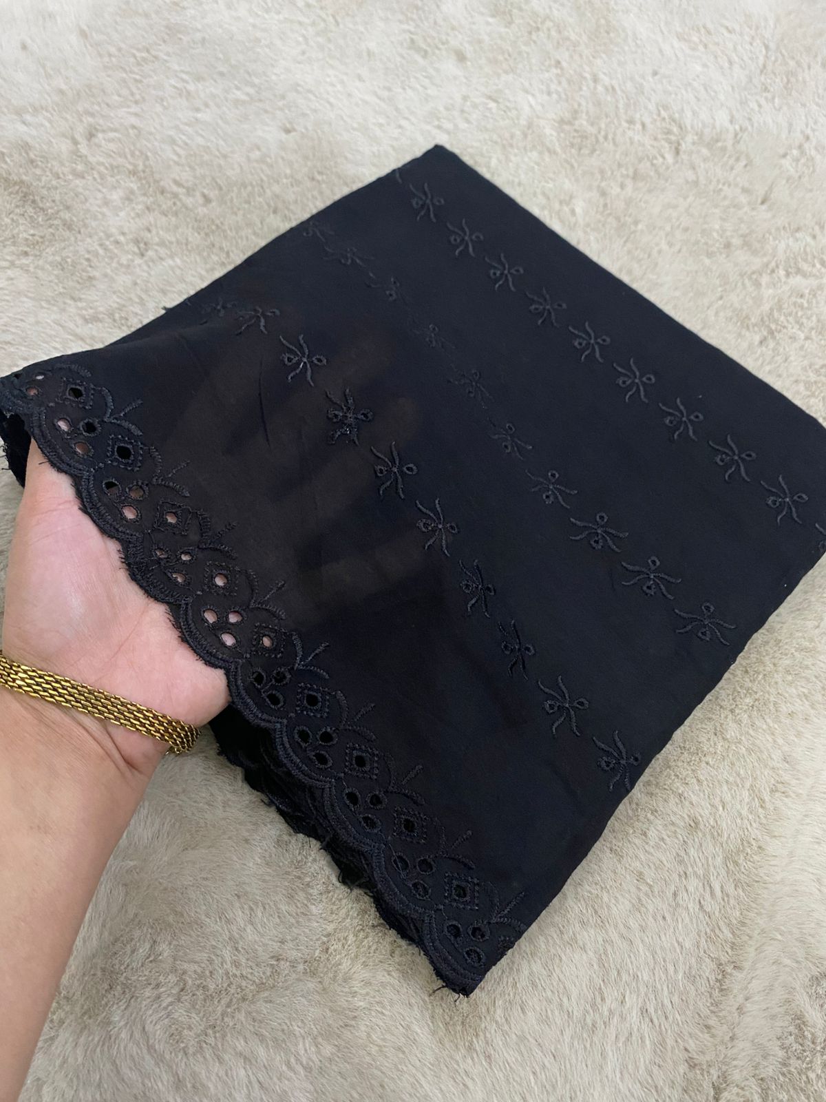 Beautiful black lawn chadar featuring delicate chikankari embroidery with intricate cutwork and scalloped borders. Lightweight, breathable, and perfect for any occasion.