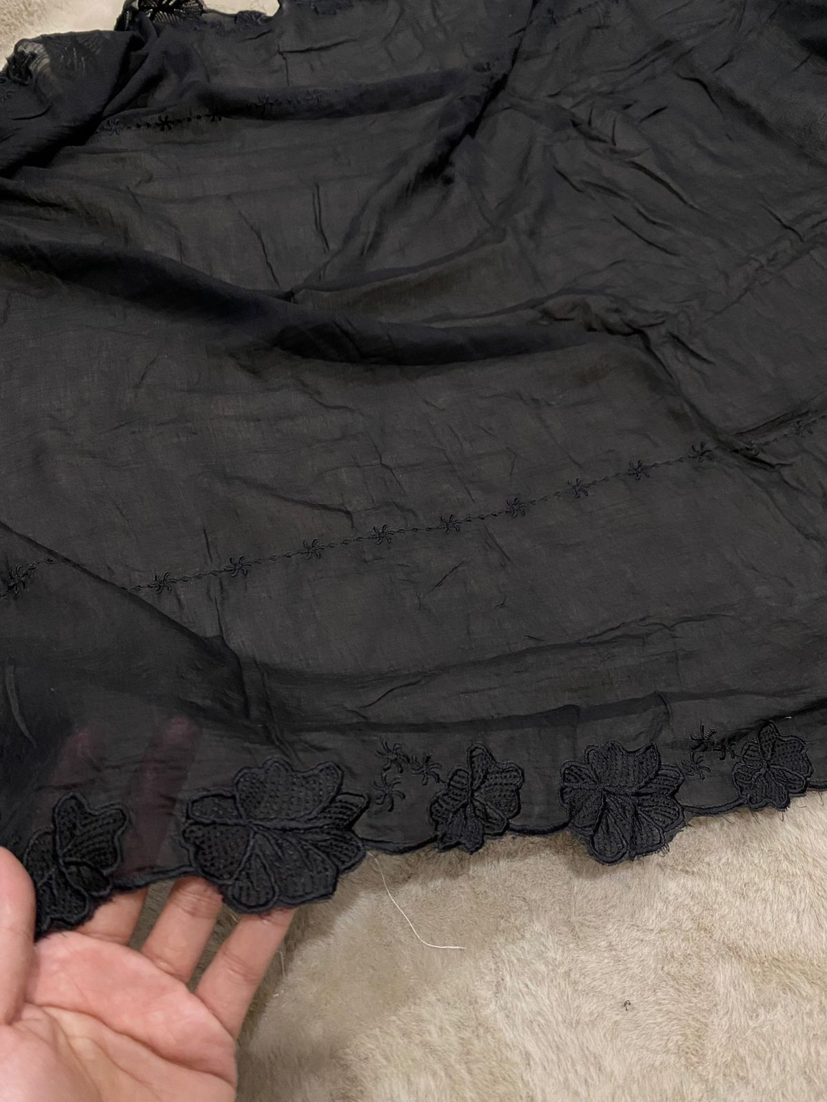 Elevate your outfit with this elegant black premium lawn dupatta, designed to add timeless charm to any ensemble. Crafted from lightweight, breathable lawn fabric, it features delicate embroidery along the borders for a refined and graceful finish.