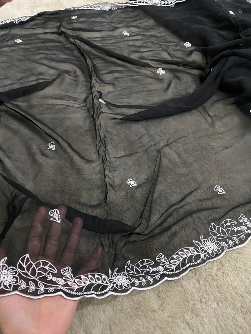 Black Pure Chiffon Embroidered Dupatta – 2.75 Yards Elegant Formal Wear