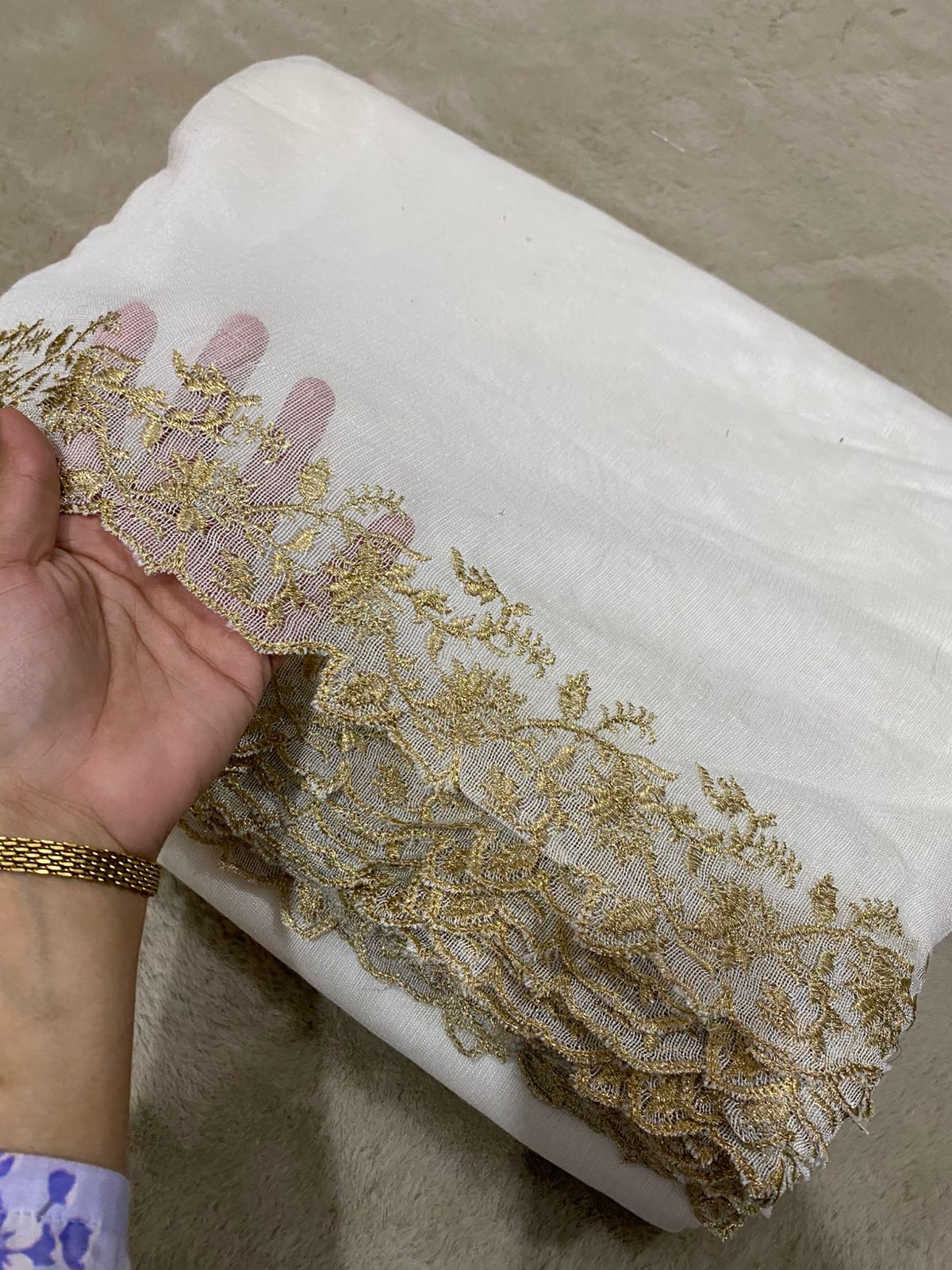 Elevate your ethnic wardrobe with this exquisite Khaddi Net Tilla Embroidered Dupatta. Crafted from premium net fabric, it features delicate tilla embroidery that adds a subtle shimmer and luxurious texture. The fabric is dyeable, allowing you to personalize the color to perfectly match your outfit.