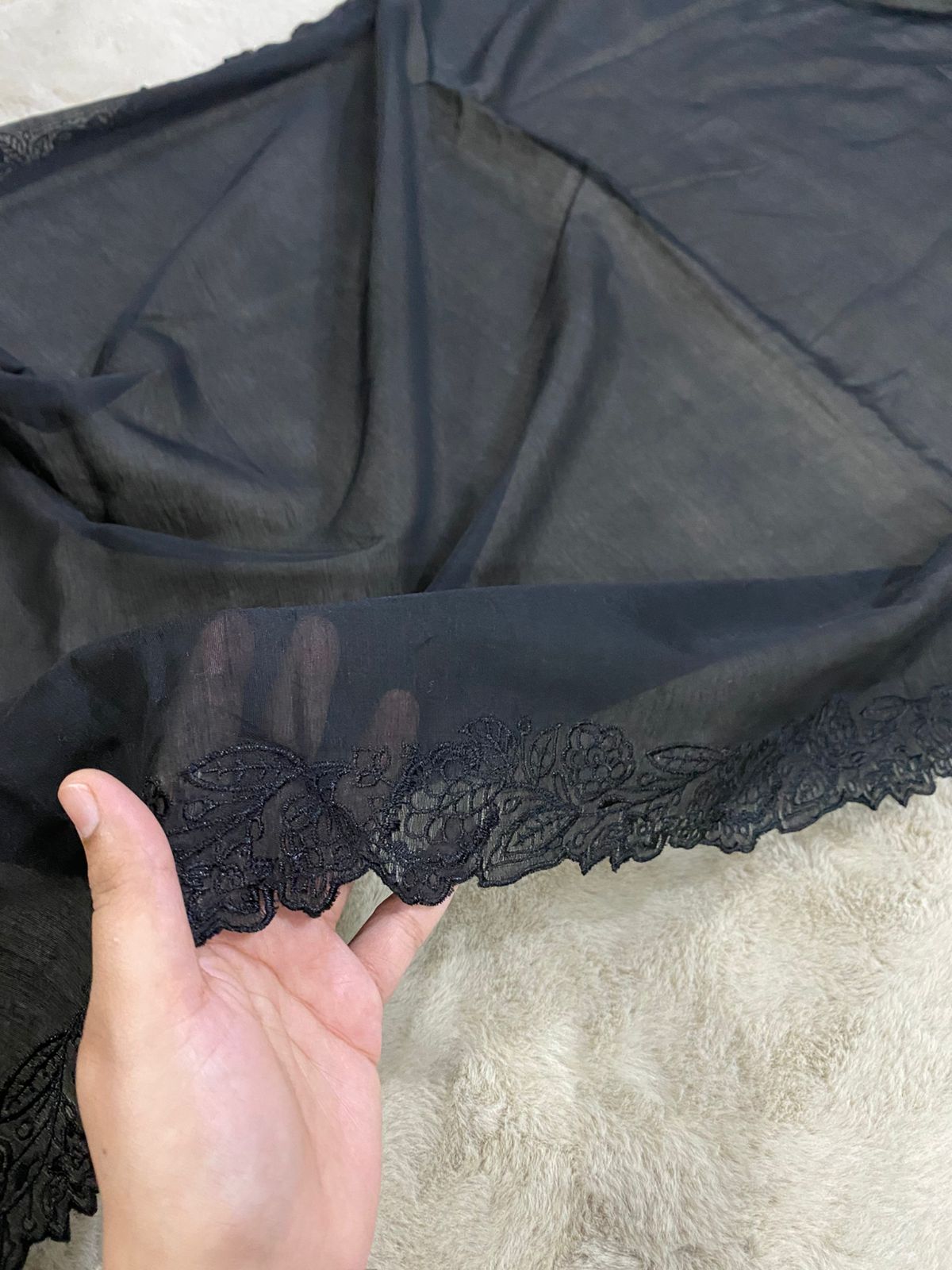 Voile Lawn Embroidered Dupatta – Black