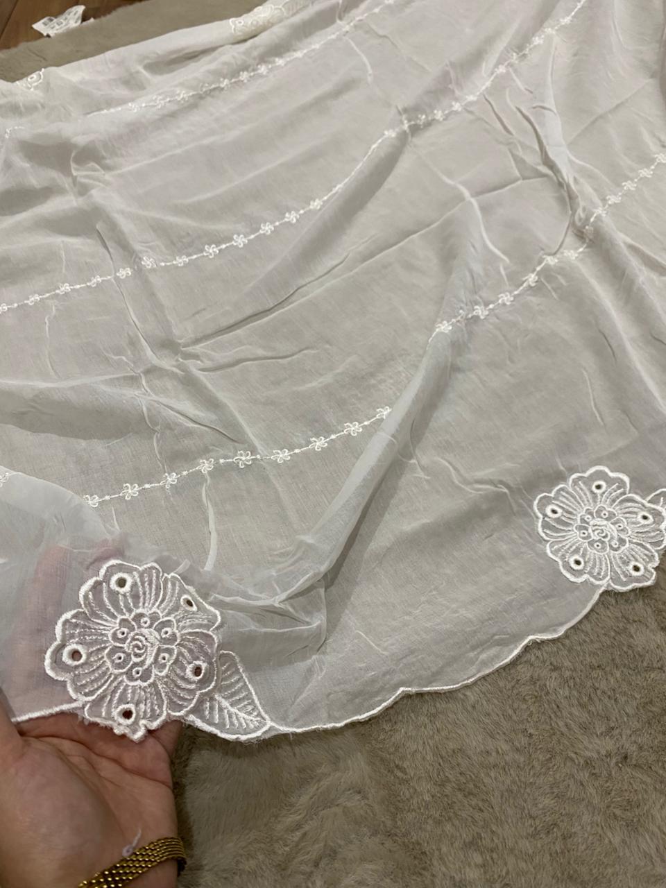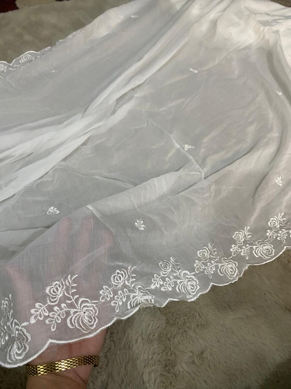 White Premium Lawn Embroidered Dupatta